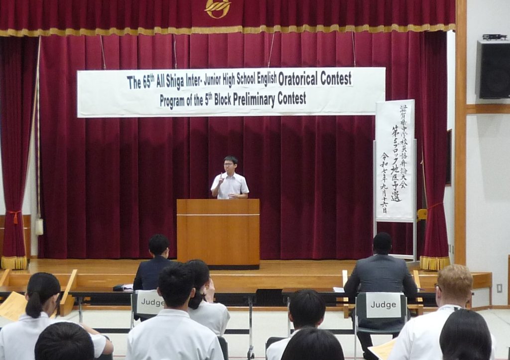 10/6 、高島市において「中学校英語弁論大会」の【県大会】が開催されました。本校の3年:兼房さんが、スピーチの部において、9月に行われたブロック大会(長浜市・米原市)ブロック1位の代表として出場しました。