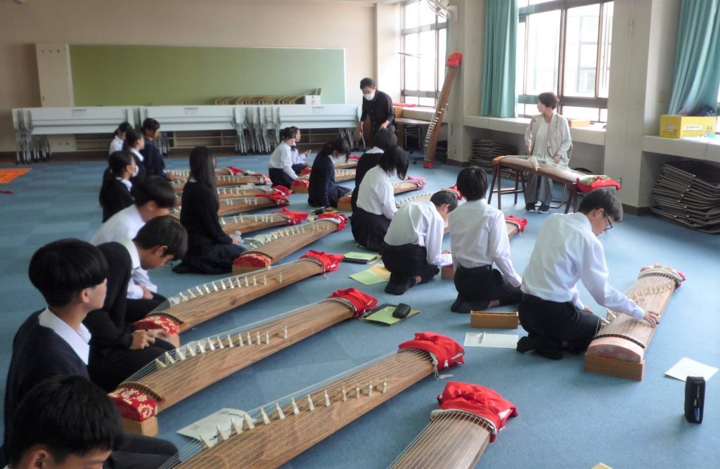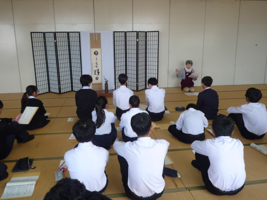 この学習は「地域と一体となった開かれた学校、文化の香り高い気品ある学校を目指し、伝統文化のもつ高い芸術性や礼儀・作法に学ばせる。人格を高め、豊かな感性を培うとともに、ふるさとに誇りと愛着をもって地域に貢献できる生徒の育成を目指す。」という目標を掲げ、平成18年度から取り組んでいます。