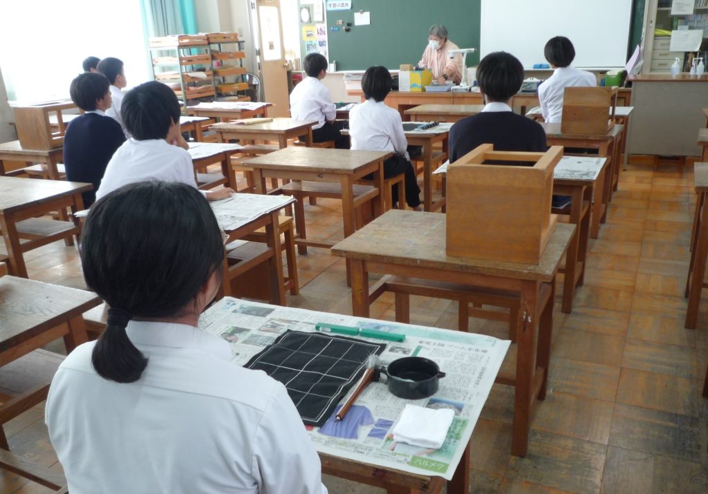 その中心が「伝統文化学習講座」です。9つの講座が開かれ、生徒は1つを選択し、2年生の10月から3年生の6月まで、原則月曜日の3校時に講座を受けることになります。