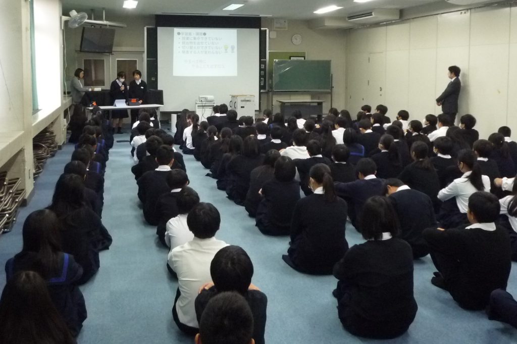 2学期も残すところあと少しとなり、本日(12/17)は、1・2年生において2学期末の「学年集会」が開かれました。