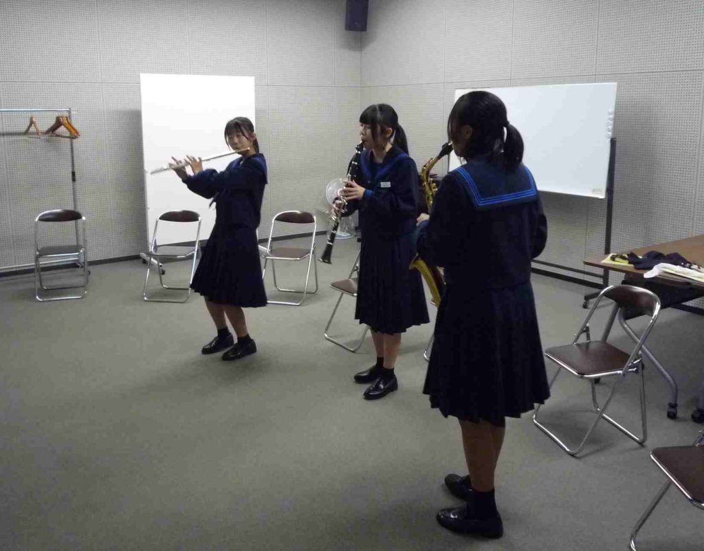 本日 (1/17) 吹奏楽の「アンサンブルコンテスト」県大会が、守山市民ホールで開催されました。本校からは、3人の吹奏楽部員が「木管3重奏」として、12月末の北部地区大会で「金賞」を受賞し、本日の県大会出場となりました。
