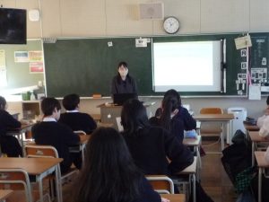 本日 (2/4) 午前、2年生の各クラスにおいて「租税教室」を開催しました。長浜税務署より講師としてお越しいただき、「税」の内容・意義・大切さを実感し、主権者である国民としてのあり方について学ぶため、本年度初めて開催しました。