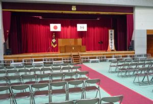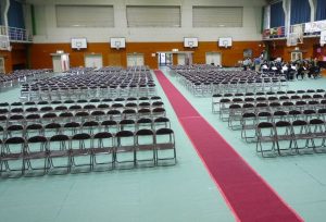 その後に「卒業式予行」、午後からは、在校生による会場設営が行われ、明日の「第79回卒業証書授与式」へ向けての準備が着々と整ってきました。卒業生にとっても在校生にとっても、3年間の総まとめと新たな門出になる節目の式となるよう願っています。