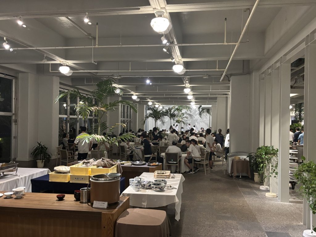 少し遅い時間からの夕食となりましたが、全員無事に夕食を終えました。この後は各自の部屋に戻って入浴や荷物整理などを行い、就寝準備です。本日は怪我や体調不良もなく無事に1日を終えることができました。しかも、飛行機の遅れをもろともせずテキパキ行動する西中生の姿にたくましさを感じました。明日2日目は「選択別体験学習」と「民泊体験」です。今晩はしっかりと睡眠をとり、明日に備えて欲しいと思います。
