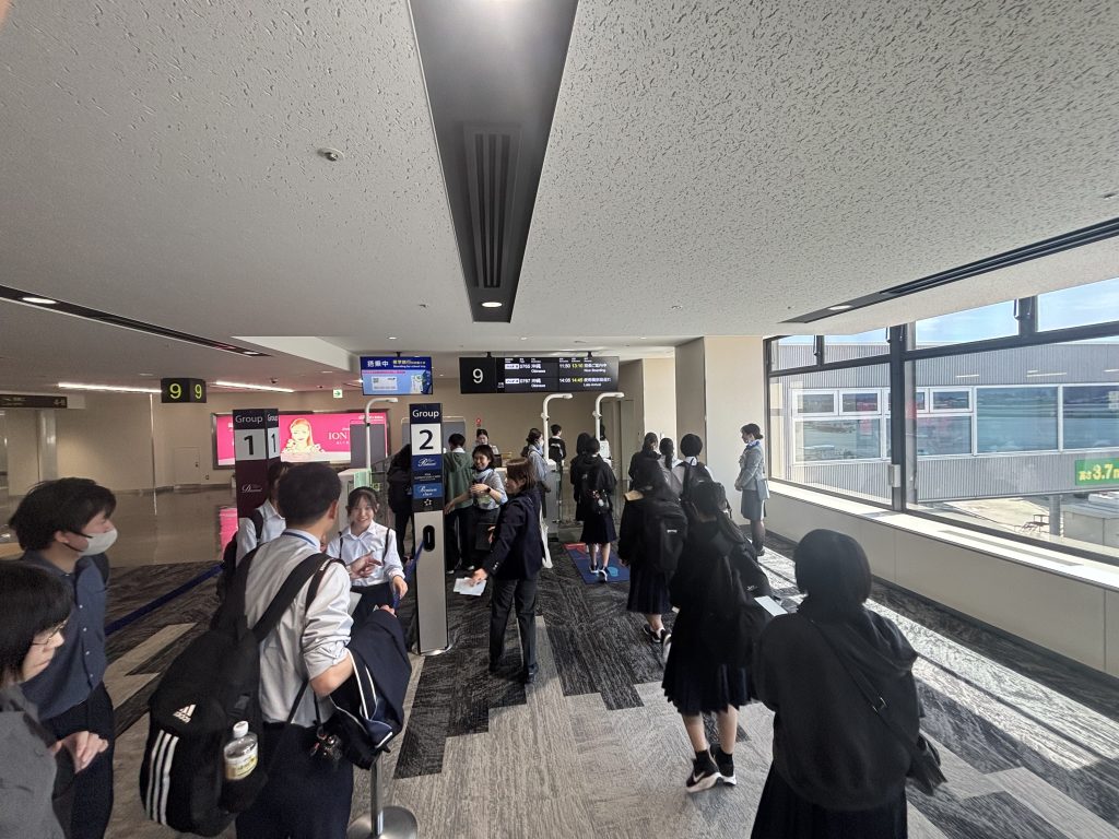 これから遅れていた飛行機に搭乗し、那覇空港へ向かいます。