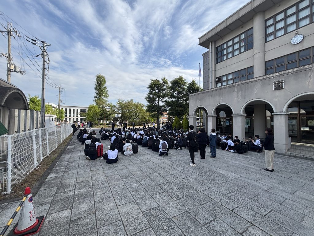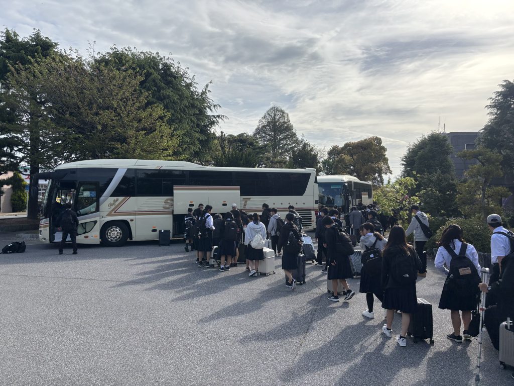 3年生にとって、待ちに待った沖縄方面への修学旅行当日となりました。学校で出発式を行い、8時前にバスで出発し、伊丹空港へ向かいました。